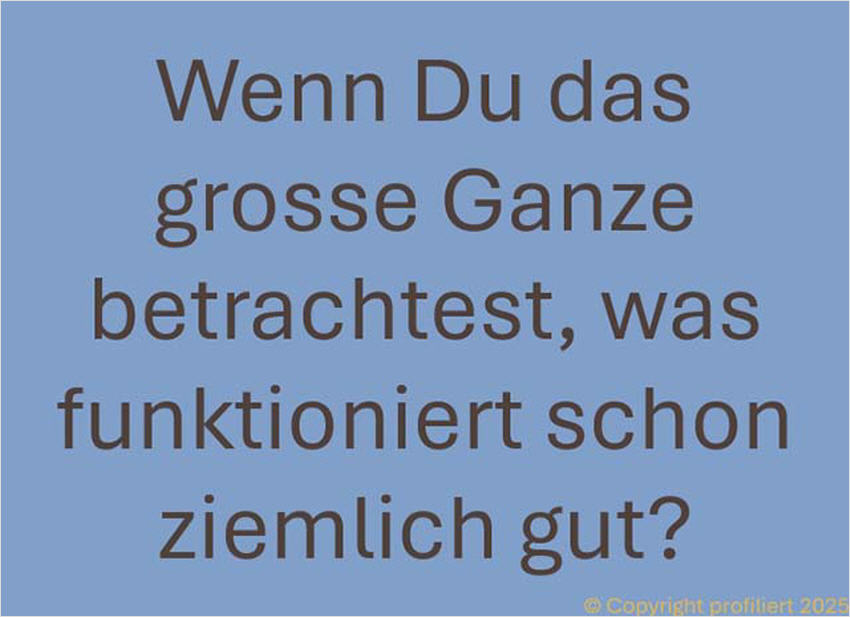 Lösungsfokus Es lohnt sich, über jede Frage nachzudenken. Man darf aber auch eine Frage überspringen und zur nächsten gehen.